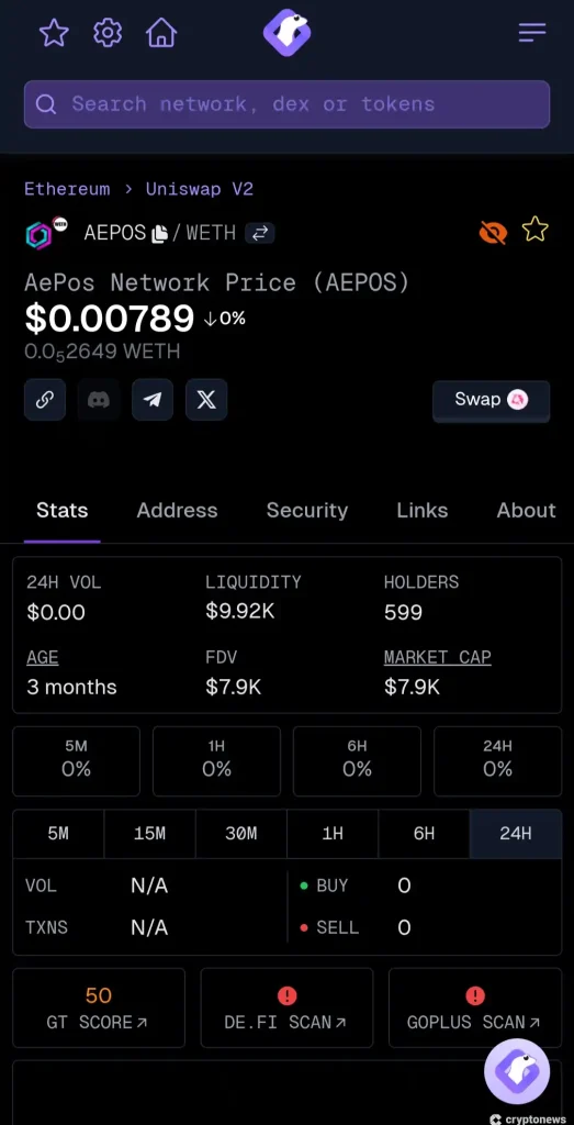 本地的$AEPOS代幣在以太坊上推出後,在幾小時內漲了超過32,000%。AePOS計劃在今年晚些時候推出其主網,並過渡到該代幣的主鏈,同時提供適用於以太坊的包裝版本。經驗豐富的開發團隊和創新的AI應用使得AePOS成為Coinbase上市的強有力候選者。