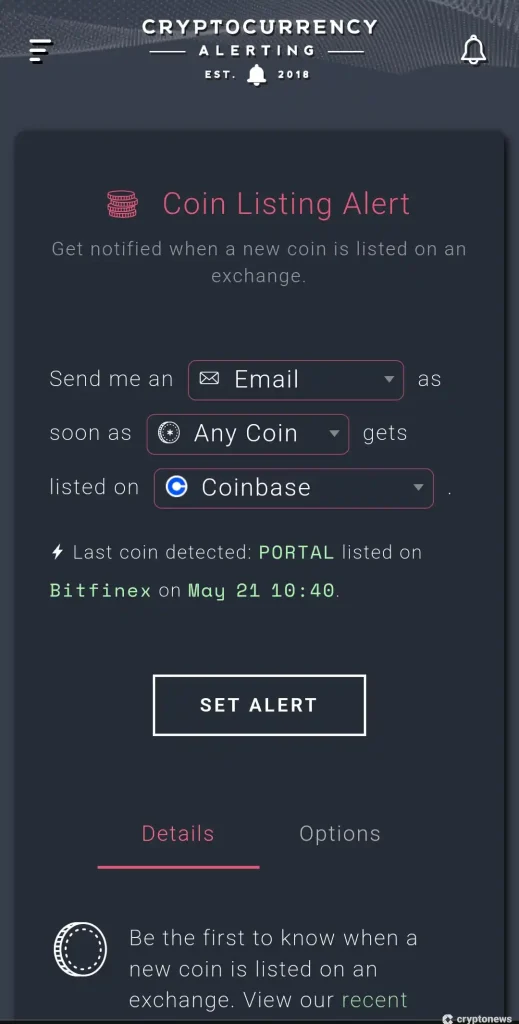 您可以使用CryptocurrencyAlerting來設置電子郵件、簡訊、Telegram和Discord的提醒,以便獲知新的Coinbase上市信息。您還可以關注X上的@BCListingAlerts帳號,該帳號發布關於Coinbase和幣安所有新代幣上市的警報帖子。