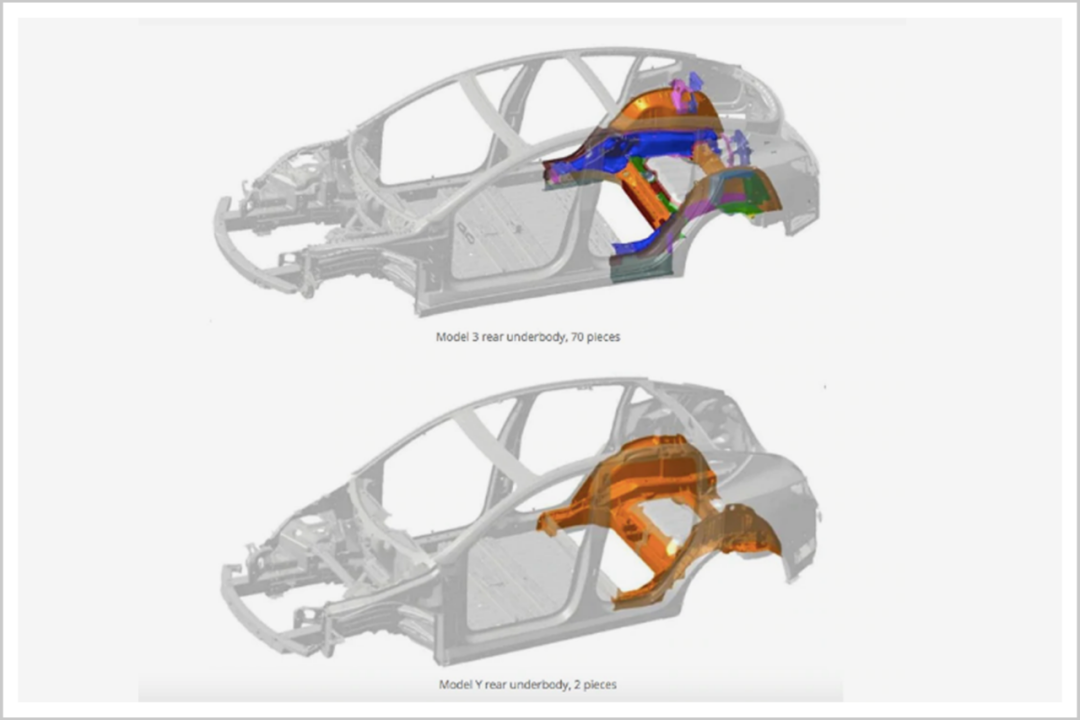 最終,採用這項技術,可以從Model 3中消除370個不同的零件。