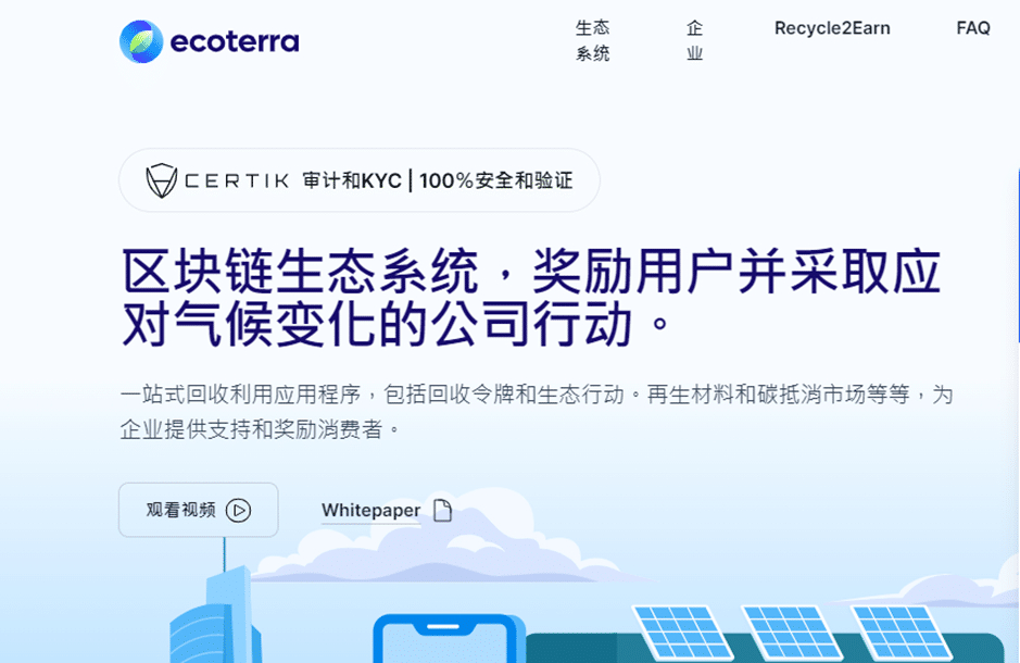 ecoterra是一個區塊鏈生態系統,旨在獎勵用戶參與應對氣候變化的行動,並支持企業採取環保措施。Recycle2Earn是其多合一應用程式,結合了回收令牌和生態行動,包括回收材料和碳抵消市場等,以增強公司的可持續能力並獎勵消費者。