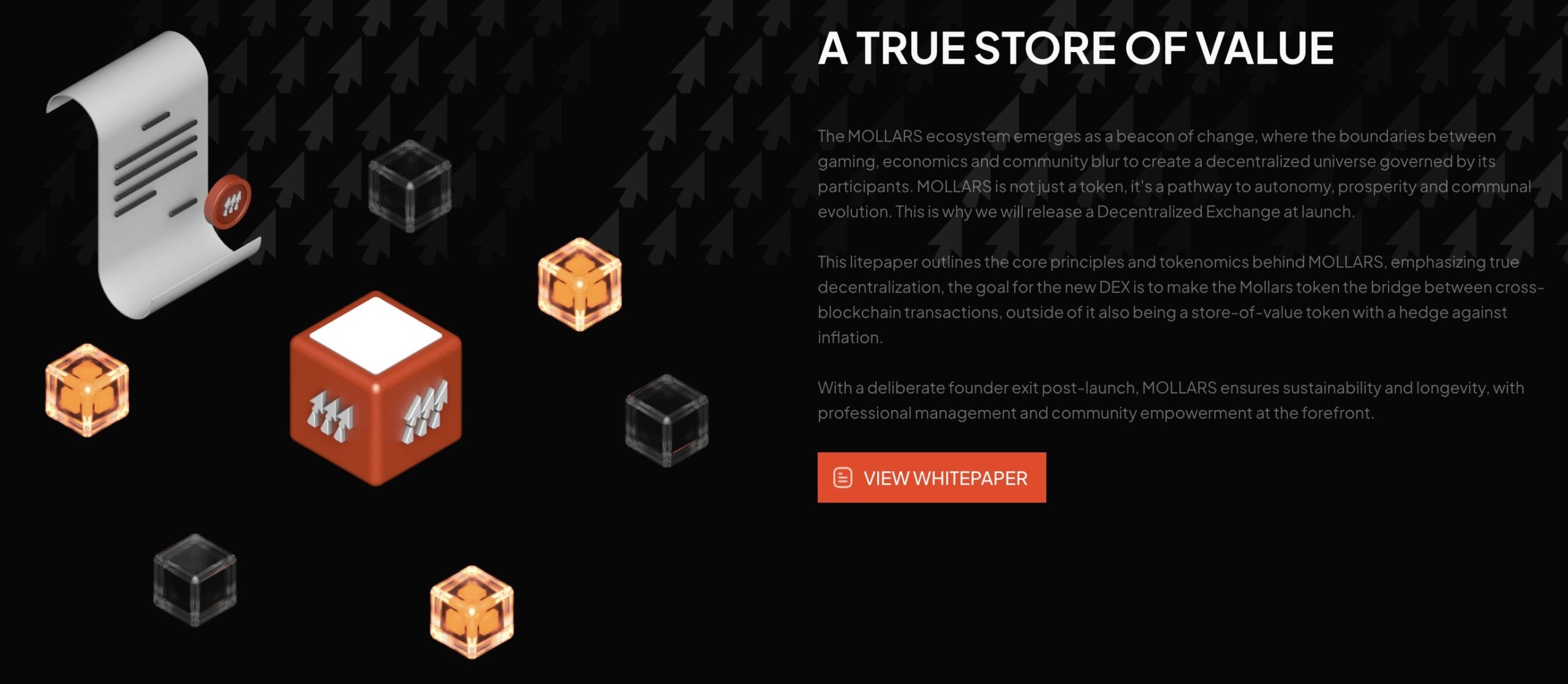 一旦代幣進行首次交易所發行,Mollars 將發布其原生去中心化交易所。它還將在生態系統內開發遊戲功能。發布後,平台創始人將放棄所有權,並向代幣持有者提供全面的治理權限。