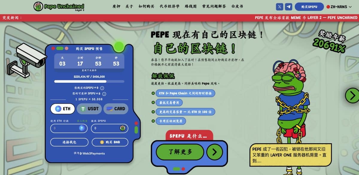 Pepe Unchained($PEPU)是一款結合了迷因趣味和 Layer 2 區塊鏈技術的新型加密貨幣。