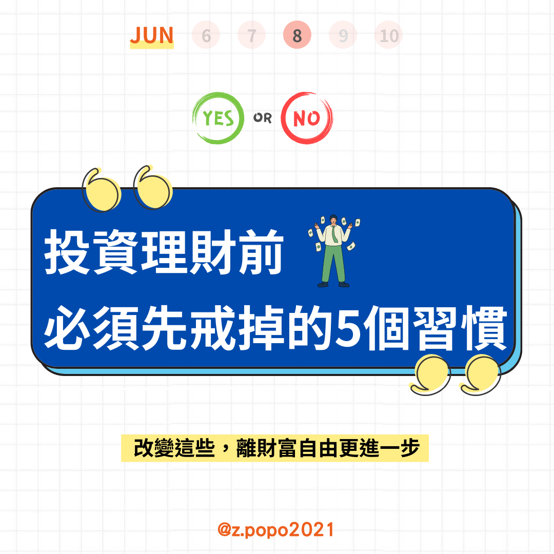 但在開始投資理財之前,可以先檢視一下自己是否有這些不好的習慣,錢就是這樣偷偷長腳的喔😱