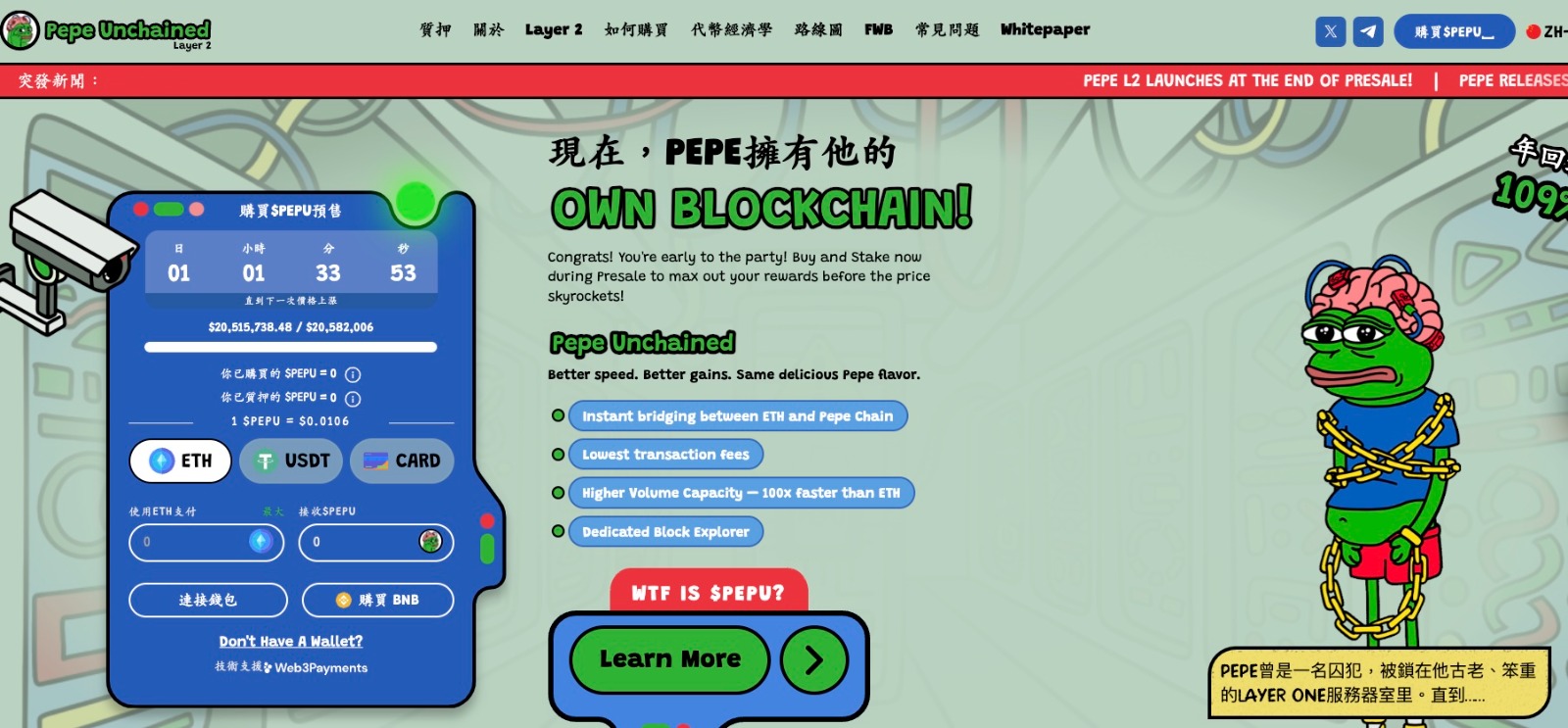 1. Pepe Unchained:Pepe 自己的 L2 區塊鏈