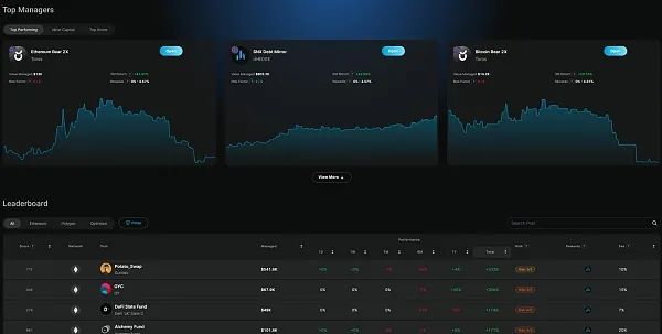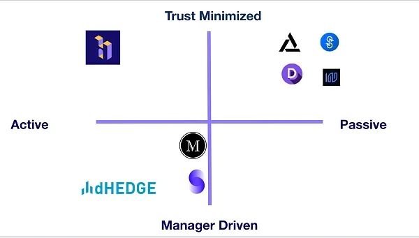 dHedge是另一個與Enzyme類似的項目,專注於鏈上主動式管理基金。儘管他們的種子輪股權投資方有十幾個頂級基金,大量的集成和一個非常厲害的UI/UX,但由於某些原因,自2021年中期以來,產品沒有那麼大的吸引力,產品背後的代幣也沒有很好的表現。