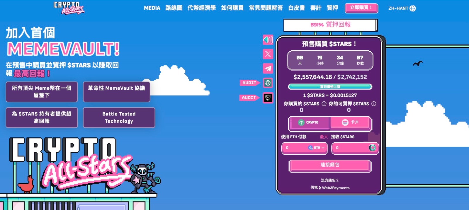 Crypto All-Stars還重視專案的安全性,通過了SolidProof和Coinsult兩家區塊鏈安全公司的審計,進一步增強了投資者的信心。隨著預售即將完成,該項目有望在未來的牛市中實現10倍增長,這也使其成為投資者的理想選擇。
