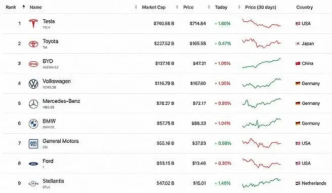 稍早,據全球車企市值排行榜顯示,比亞迪以1288億美元(約8626億人民幣)的總市值反超大眾集團排名第三,成為前10榜單中唯一的中國車企。