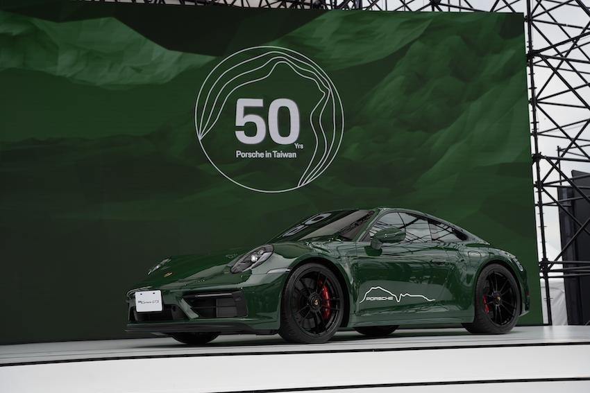 為了紀念 50 週年慶,Porsche AG 原廠打造一款 911 Carrera GTS 保時捷在台 50 週年獨步紀念款,以層峰綠車色塗裝,配置 Turbo S Exclusive Design 輪圈,開啟車門後則有 50 Years Porsche in Taiwan 專屬字樣的鋁合金自發光門檻,副駕前方控台也有 911 Carrera GTS 50 Years Porsche in Taiwan 專屬字樣,這台將在 2022 年第四季的公益拍賣上開放拍賣。