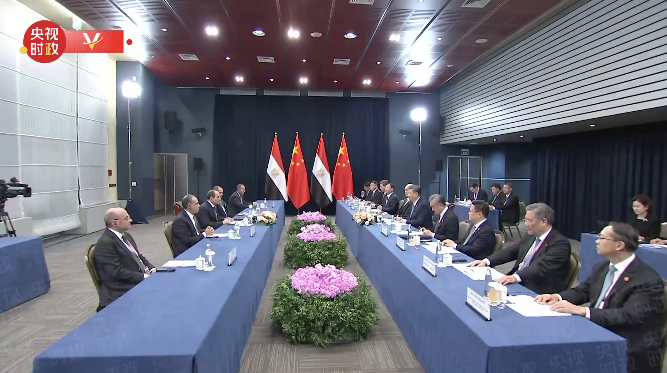 習近平祝賀並歡迎埃及首次作為正式成員參加金磚國家領導人會晤。習近平指出,今年是“中埃夥伴年”和兩國建立全面戰略夥伴關係10周年。中方堅定支援埃及維護國家主權、安全、發展利益,願同埃方做守望相助的真誠朋友、攜手發展的親密夥伴。雙方要繼續堅定相互支援,鞏固政治互信,深化務實合作,高品質共建“一帶一路”,密切人文交流,推動雙邊關係朝著建構面向新時代的中埃命運共同體目標持續邁進。中方也願同埃方加強協調,推動“大金磚合作”行穩致遠,進一步提升全球南方影響力和發言權,維護髮展中國家共同利益。