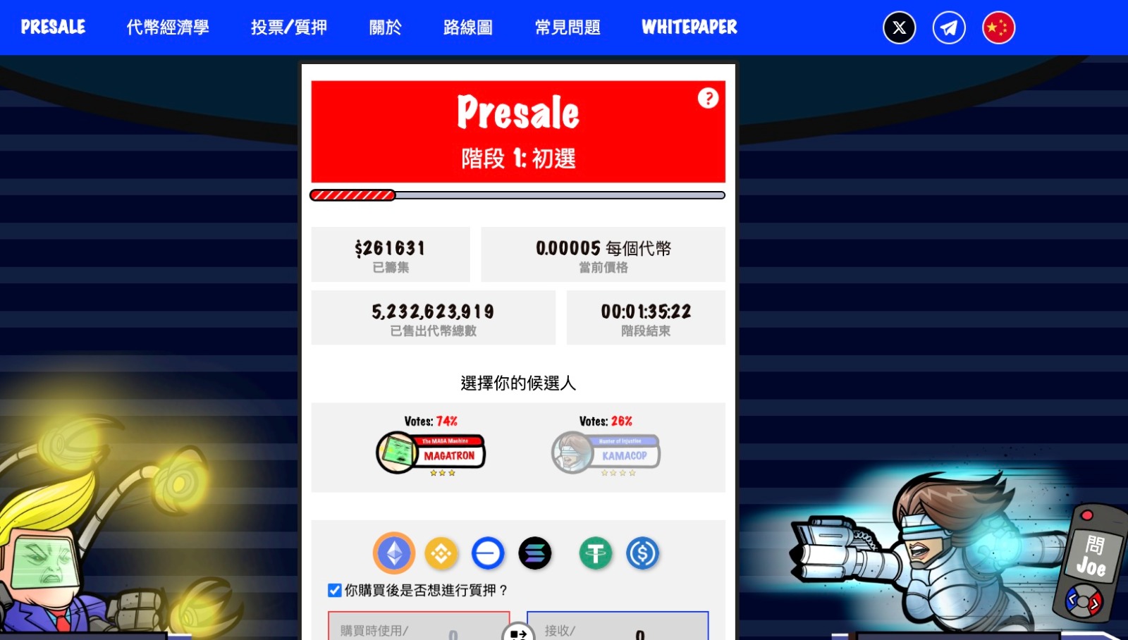 FreeDum Fighters($DUM)作為一個專注於政治迷因幣新興專案,在預售階段已經顯示出巨大市場潛力。$DUM代幣首次代幣發行(ICO)分為四個階段,初始價格為每枚0.00005美元,預計隨著預售推進,價格將逐步上漲至0.000125美元。這樣分階段定價策略不僅吸引了早期投資者關注,也提高了代幣市場期望值。