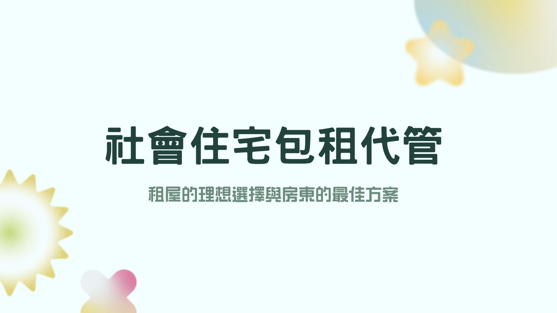 台灣長期以來因住宅供需失衡、房價高漲與市場資訊不透明,民眾改善居住環境的需求難以滿足,尤其對於年輕人與弱勢族群,租屋成為迫切需求。然而租屋市場缺乏保障,許多人面臨「租不起、租不好、租不到」的窘境。蔡英文總統於2016年提出「8年20萬戶社會住宅」政策,而賴清德總統上任後持續加碼推動,包括社會住宅新建、包租代管及租金補貼三大核心政策,目標達到100萬戶,以緩解台灣的居住問題。本文將聚焦介紹「社會住宅包租代管」政策的內容與適用對象,並解析其優缺點與政府提供的優惠措施。