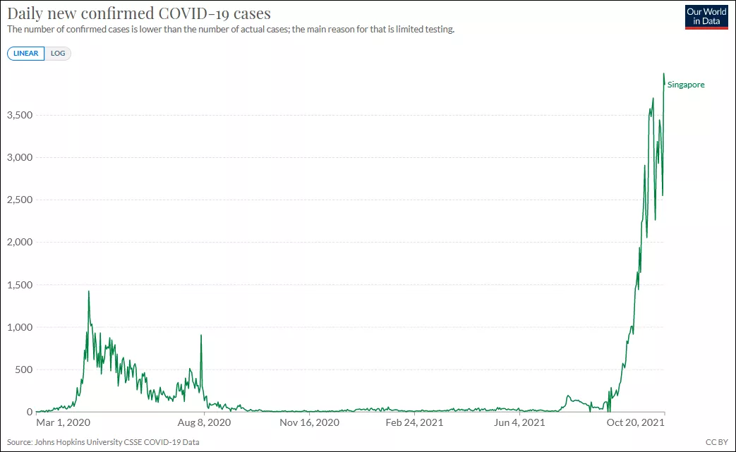 新加坡今年6月宣佈,將放棄新冠"清零"策略,轉而"與病毒共存"。 但自從新加坡8月開始放寬防疫措施以來,該國新冠疫情劇烈反彈。 兩個月內新加坡確診病例激增近9萬例,連續6天單日新增突破3000例,其中10月19日更是達到3994例,突破歷史紀錄。