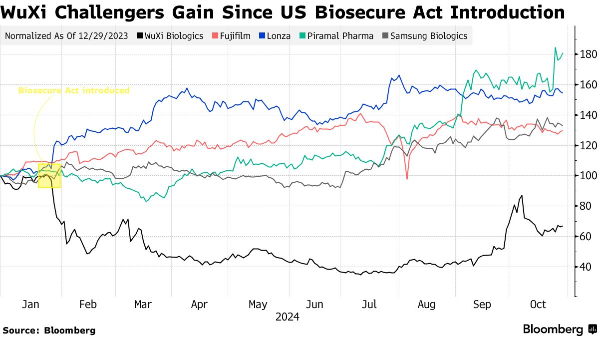 藥明康德在香港上市的股票今年已下跌約35%,其銷售額的一半以上來自美國,而麥格理集團的股價則下跌了41%。
