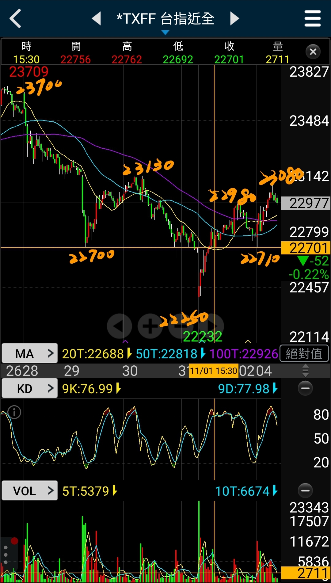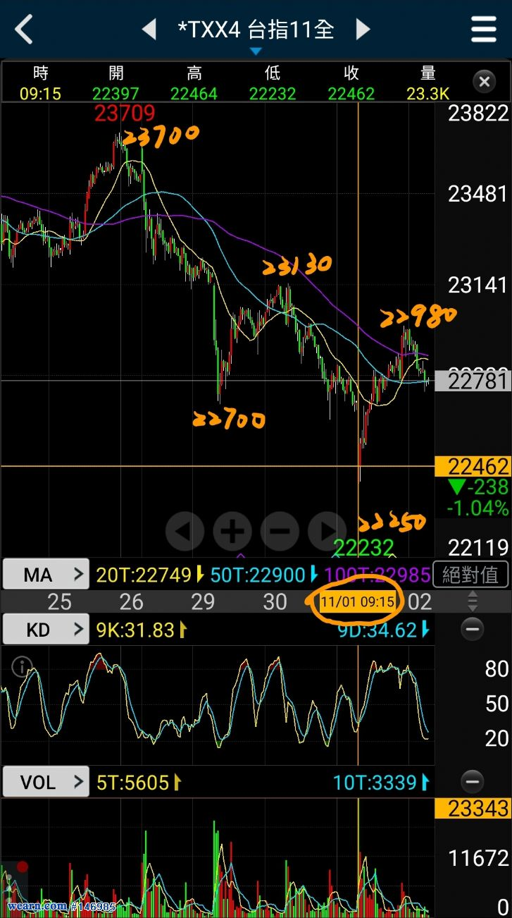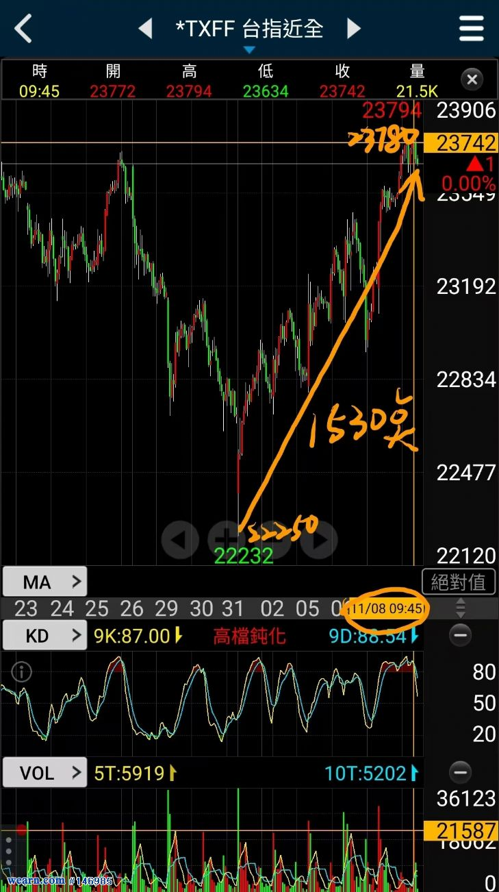 11/1台指如預測摜破季線22250後強彈,短短一周越過23780已有超過1500點價差!😎