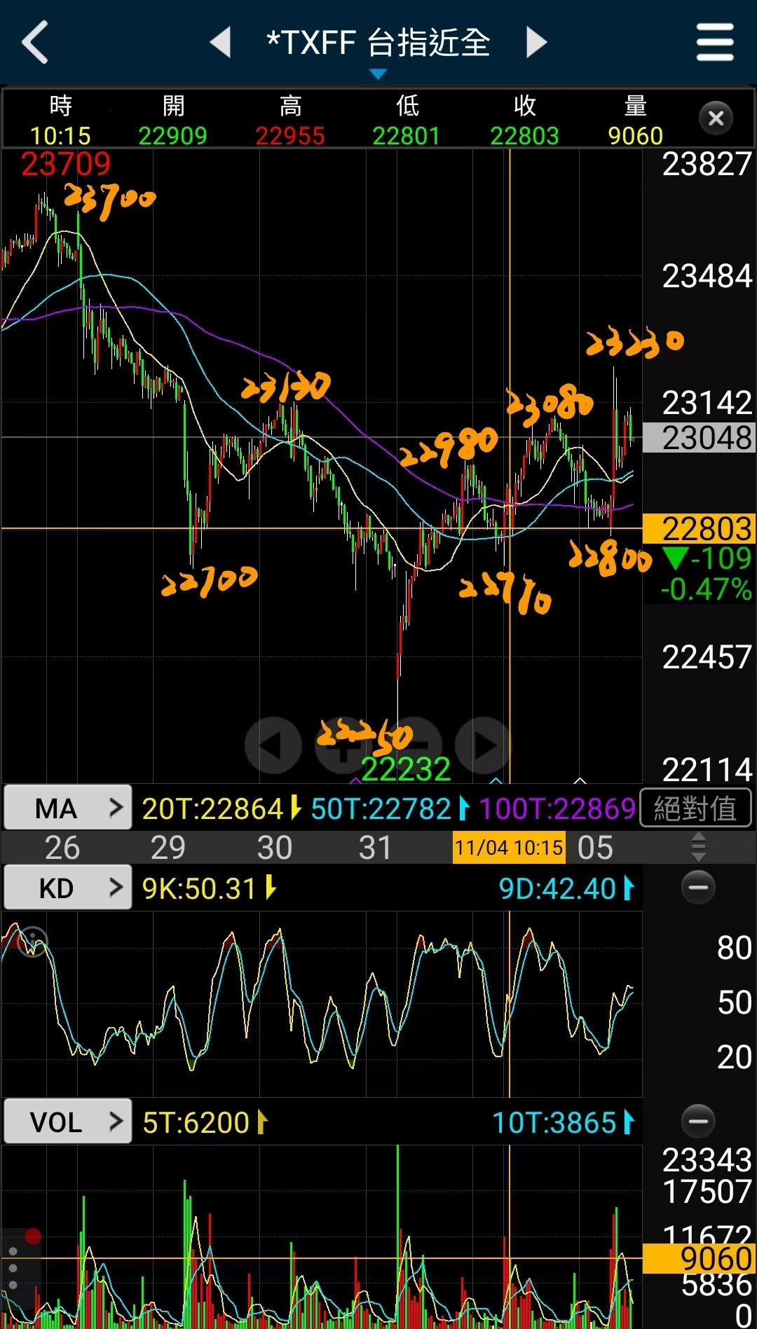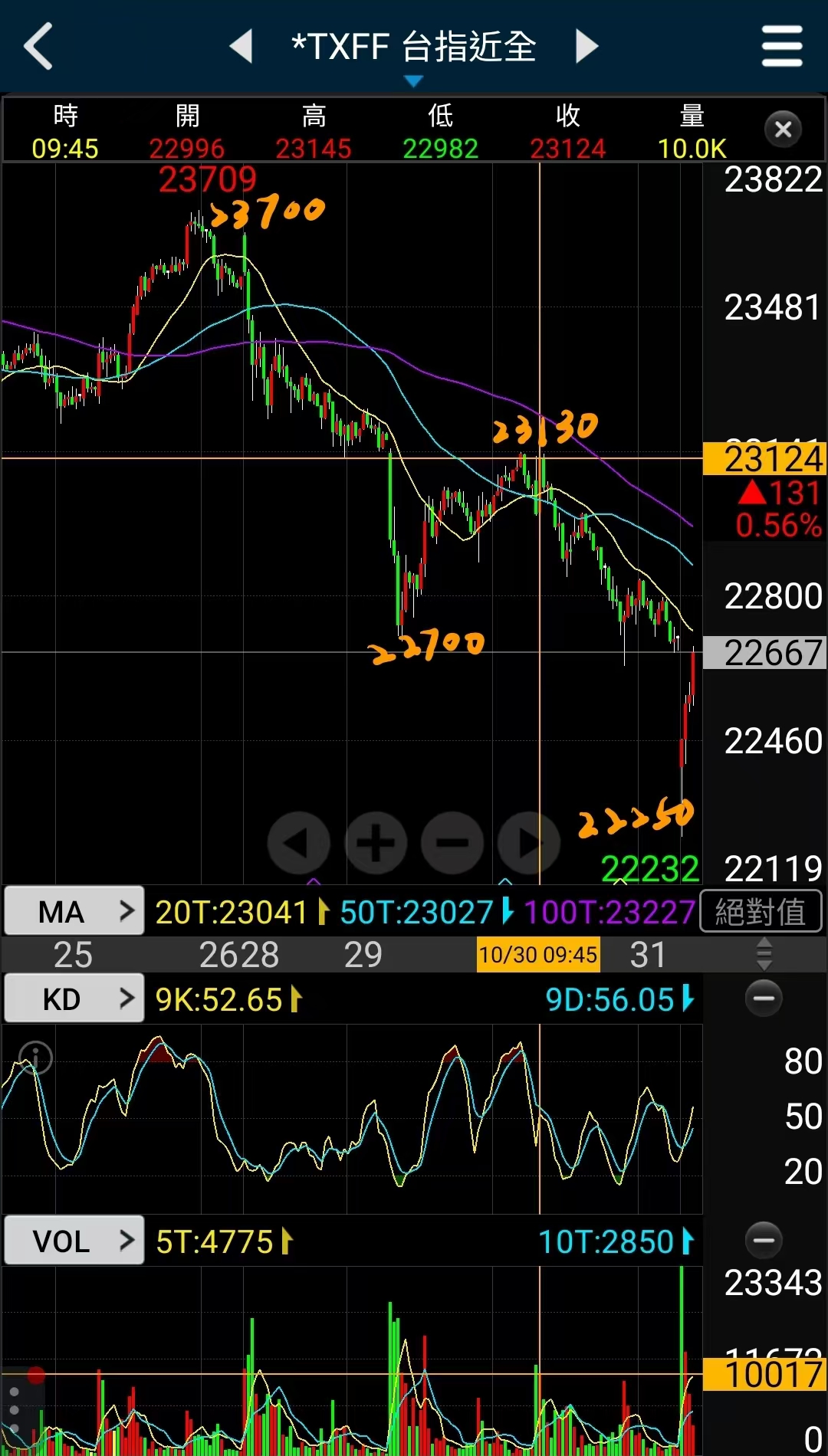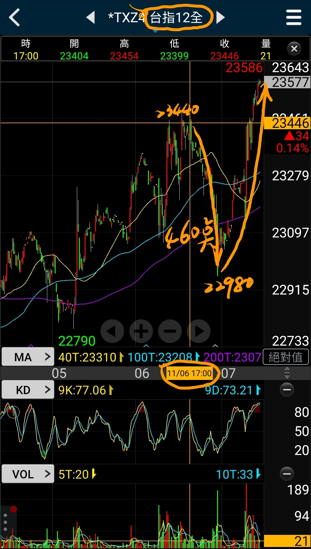 11/1台指如預測摜破季線22250後強彈,短短一周越過23780已有超過1500點價差!😎