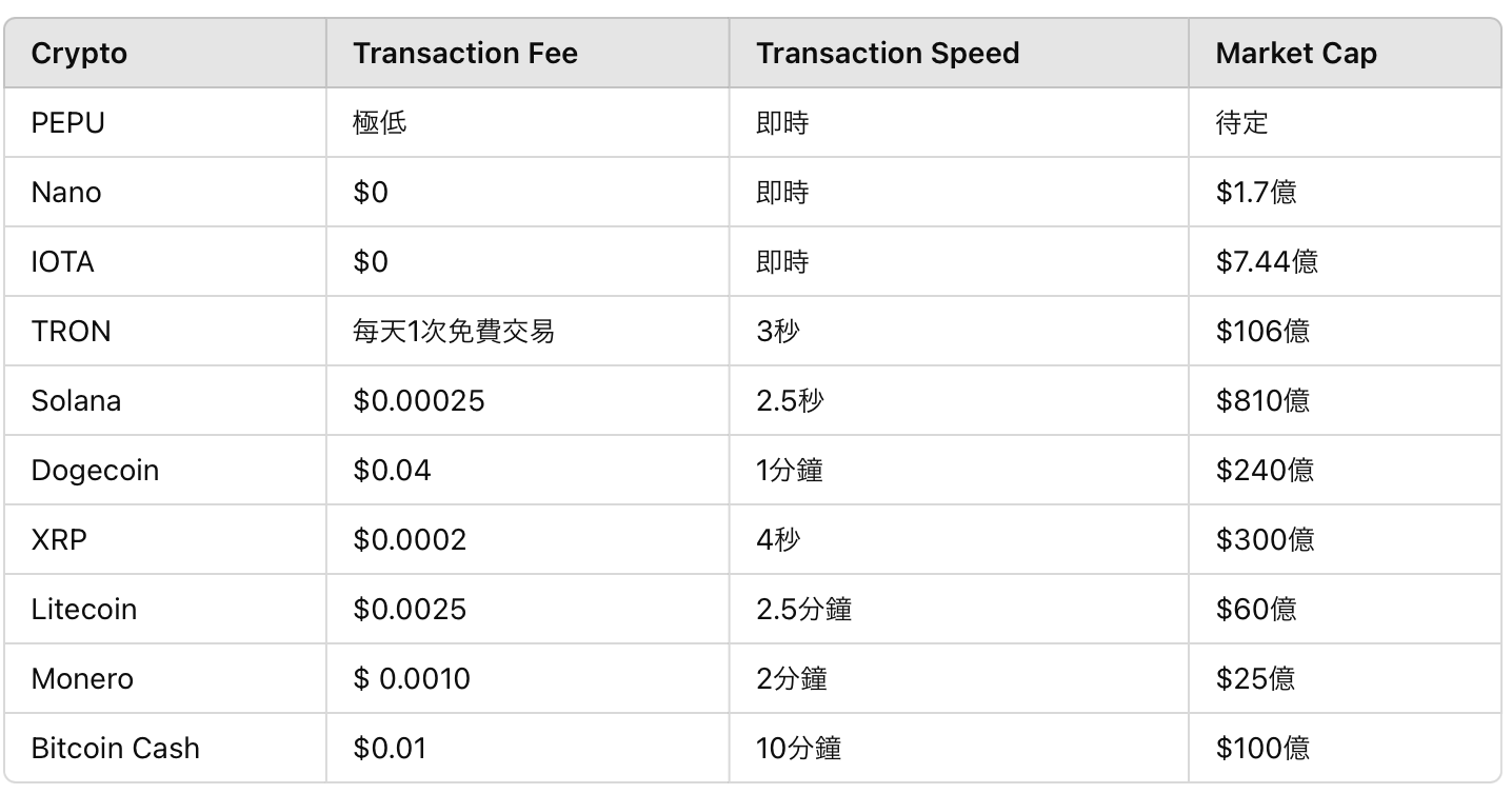 與以太坊的高手續費不同,Pepe Unchained以極低的成本提供幾乎即時的交易,使其成為一個有吸引力的投資機會。