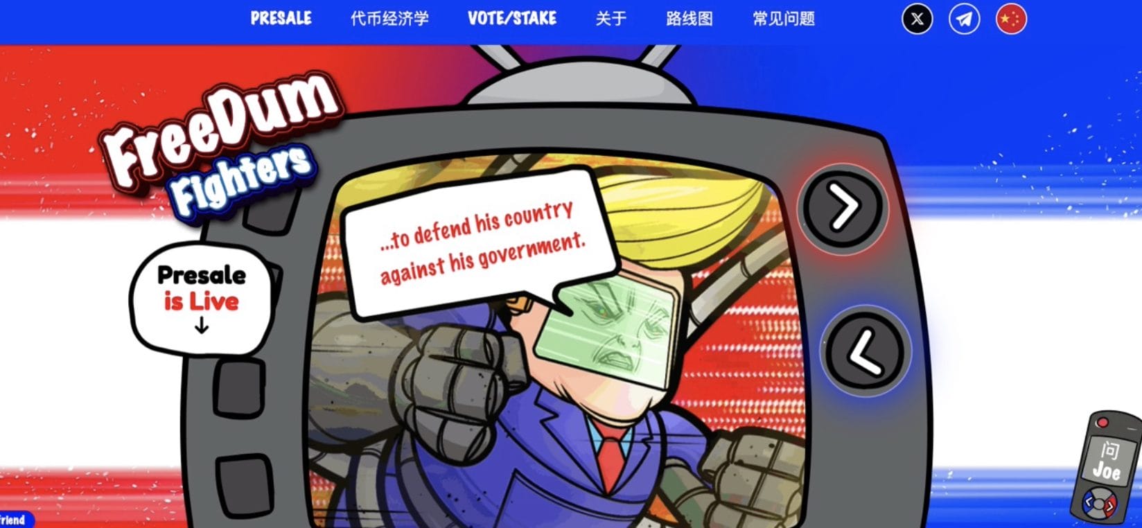 FreeDum Fighters 是一個基於諷刺和迷因文化的加密貨幣項目,它通過模擬美國總統選舉的形式,吸引了大量加密貨幣用戶的關注。項目中的 MAGATRON 和 Kamacop 9000 是虛擬候選人,分別代表了現實中的兩位政治人物——特朗普和哈里斯。用戶可以通過購買 $DUM 代幣,支持他們喜歡的候選人,並參與選舉。