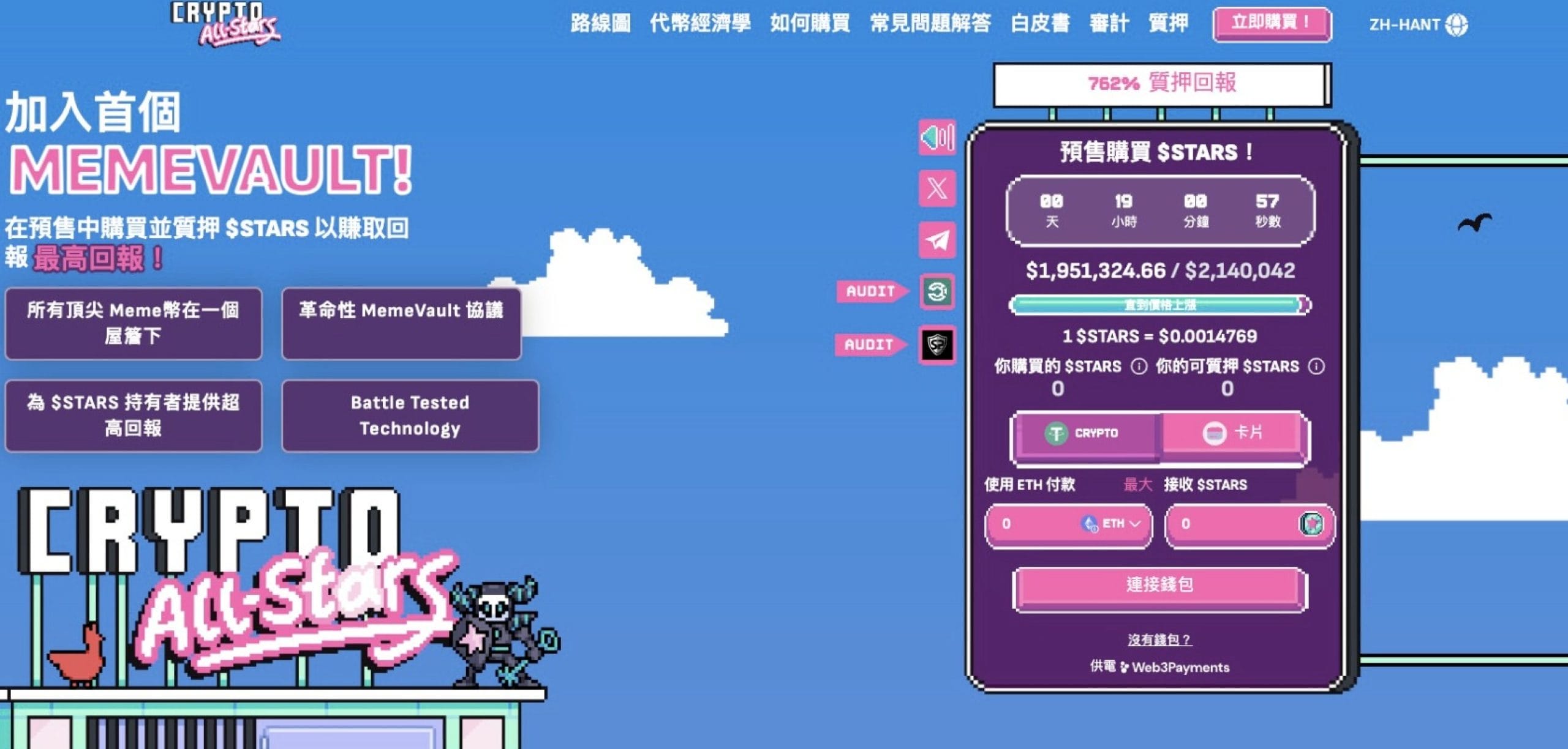 Crypto All-Stars ($STARS) 正在改變 Meme 幣領域。該項目被稱為 “MemeVault”,旨在將多個區塊鏈上的 Meme 社區匯聚在一個平台下。通過區塊鏈技術,它使持有者能夠質押 Meme 幣以獲得競爭性獎勵,提供了一種去中心化且便利的替代傳統質押平台的方式。