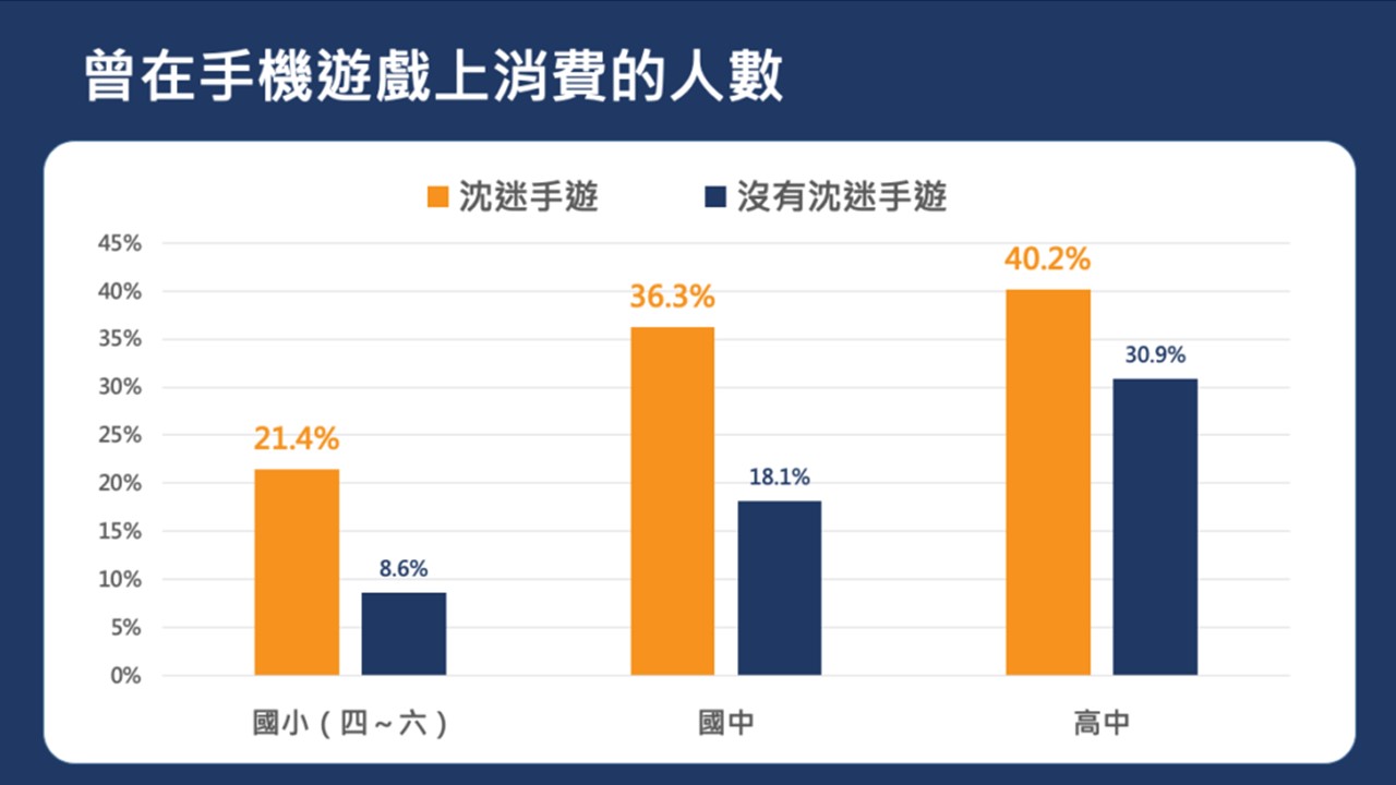 從兩者數據來看,從國小生到高中生,沉溺於網路世界且消費遊戲的比率算高