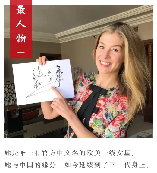 “華”則代表了中國,也有“花”的意思,恰恰呼應了她的英文名Rosamund——“世上最美的玫瑰”。