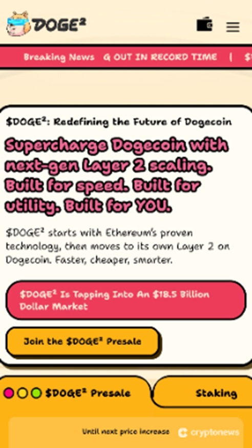 Dogesquared($DOGE2)是下一代二層擴展解決方案,旨在通過結合乙太坊和 Dogecoin 區塊鏈優勢,顯著提高 Dogecoin 網路速度和功能。