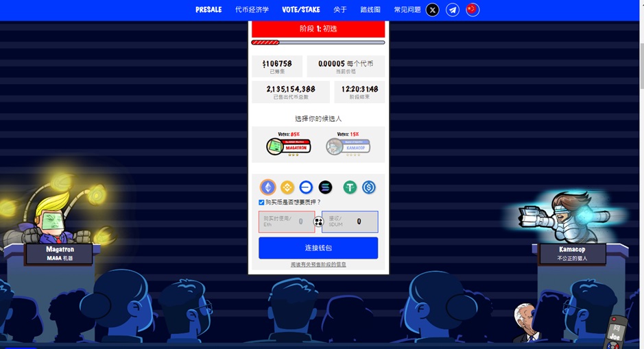 預售從 10 月份開始,將分為四個階段。本幣為 $DUM 代幣,可在多個鏈上使用:ETH、Solana、Base 和 BSC。該代幣具有多種實用功能,使用戶能夠投票、獲得獎勵並參與多種活動,ERC-20 代幣 目前價值 0.00008 美元。