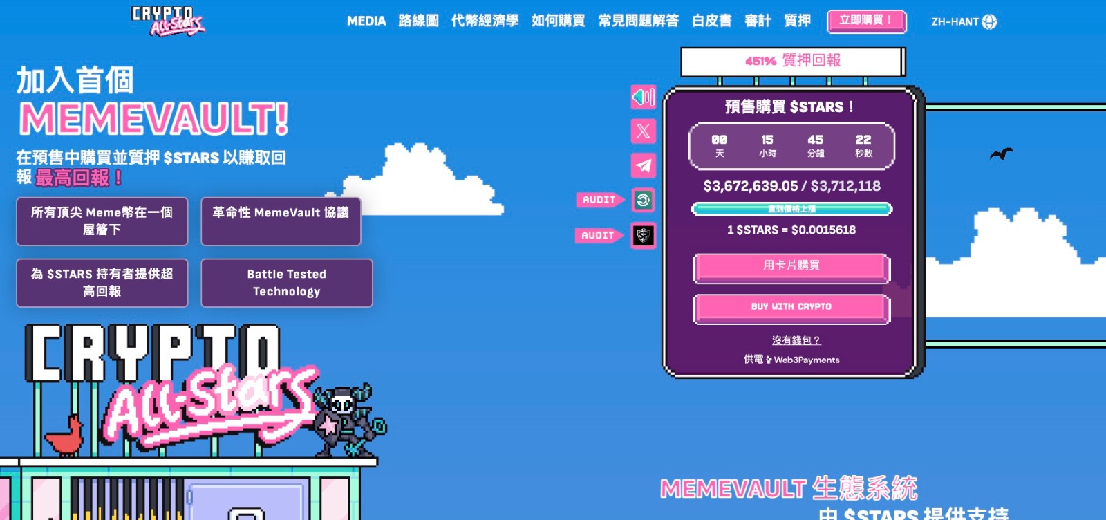 目前,Crypto All-Stars也正在進行預售,已籌集了380萬美元,$STARS當前預售價格為$0.0015432,但價格將在兩天后上漲。
