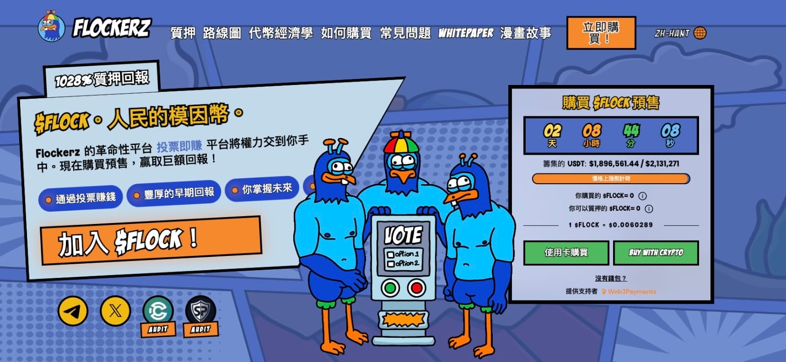 Flockerz (FLOCK) 是一個採用DAO(去中心化自治組織)機制的迷因幣項目,旨在將治理權交給社區成員,即代幣持有者。