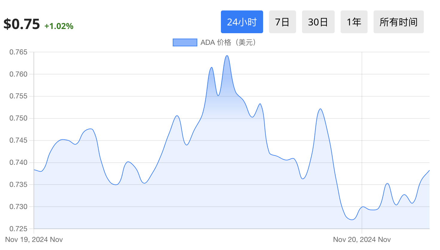 自2024年11月6日以來,卡爾達諾的價格在短短5天內上漲了約80%。然而,從長期價格走勢來看,目前的價格仍然處於較低水平。