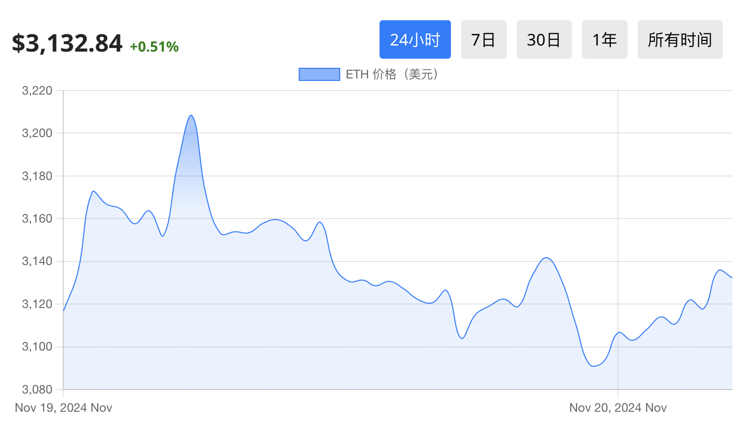 截至本文撰寫時,受特朗普當選影響,美國市場中交易的現貨ETF資金流入急劇增加,和其他許多加密貨幣一樣,以太坊的價格也迎來快速上漲。然而,相比比特幣,以太坊的漲幅仍顯得較為溫和。