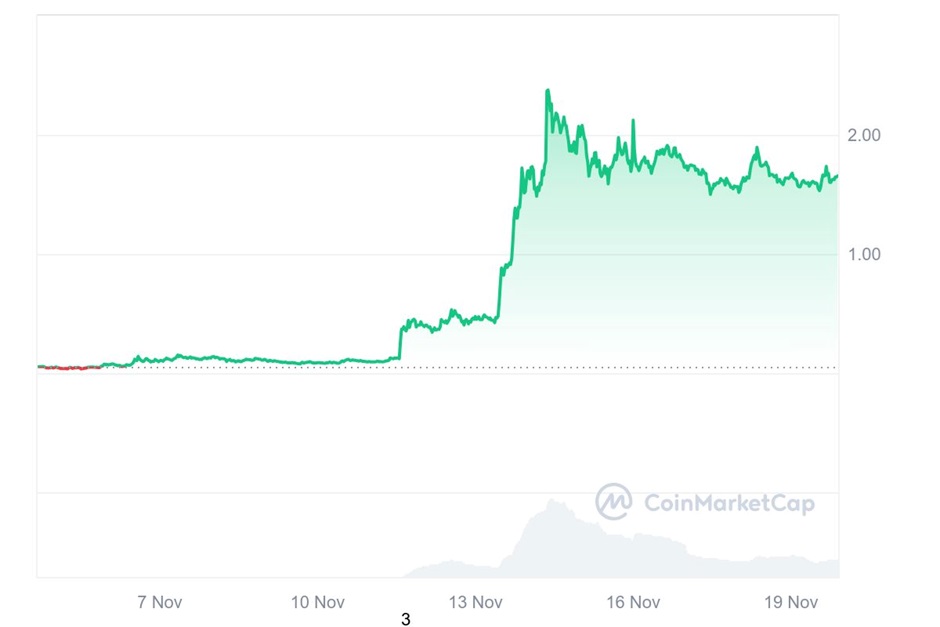 模因幣超級週期全面回歸,湧現出大量價格飆升的新代幣,例如 Peanut the Squirrel($PNUT)。自11月5日以來,$PNUT 已實現5000%的驚人回報,市值達到16.2億美元。