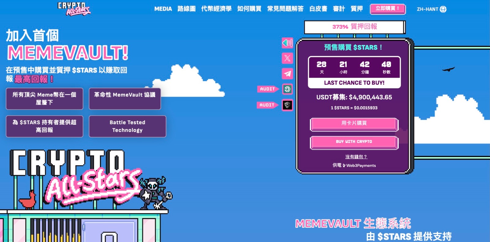 市場的波動是常態,而Crypto All-Stars通過其創新的質押模式和豐厚的獎勵機制,為迷因幣市場帶來了新的機遇。如果你還沒有參與預售,現在正是最好的時機。訪問Crypto All-Stars網站,連接你的錢包並使用ETH、USDT或BNB獲取$STARS,加入這個迷因幣領域的新革命。