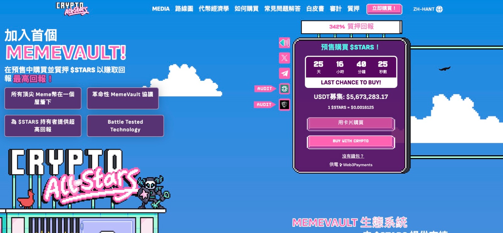 Crypto All-Stars($STARS)通過其革命性MemeVault協議,為模因幣持有者提供了一個質押賺取收益平臺。該協議基於ERC-1155標準,允許使用者在單筆交易中質押多個模因幣,極大地降低了手續費。這一功能吸引了大量尋求被動收入投資者,並促進了$STARS在預售階段籌集超過580萬美元。