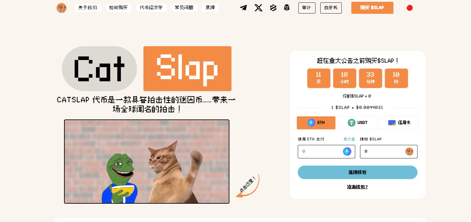 CatSlap不僅僅是另一個模因幣,其結合了去中心化金融(DeFi)和遊戲化創新模式。該專案推出了一款“點擊即拍”(Click-to-Slap)遊戲,並計畫整合更多邊玩邊賺(P2E)功能,吸引更廣泛用戶參與。此外其開發團隊被認為與Dogwifhat和Peanut the Squirrel等成功專案有關,進一步增強了市場對$SLAP信心。