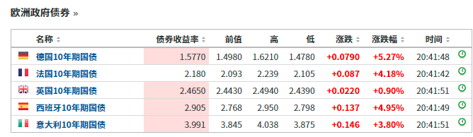 歐洲主要國家的國債收益率亦集體飆升,這意味著國債市場正承受著巨大壓力。