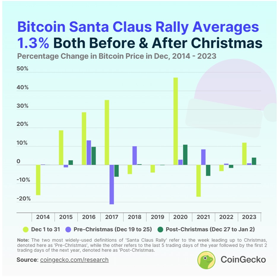 下周可能會迎來聖誕拉力賽嗎? 自9月以來,加密市場一直表現強勁。僅9月,所有加密貨幣的總市值就上漲了7.54%,10月又上漲了5.77%。11月再次成為收益最佳的月份,回報高達44.54%。