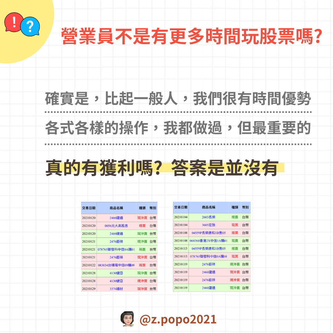 當了2年的營業員,當然什麼交易方式都嘗試過,權證、零股、波段、當沖,尤其是當沖賺錢的時候就會想著:挖~我今天賺2000,一個月就可以多4萬的錢,想必大家都是這樣的