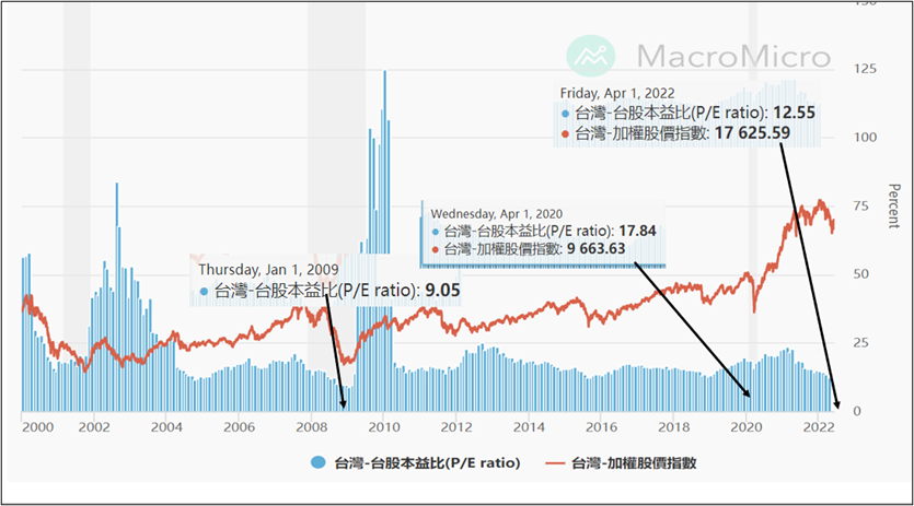 以往台股幾次低本益比後,都有反彈的機會。