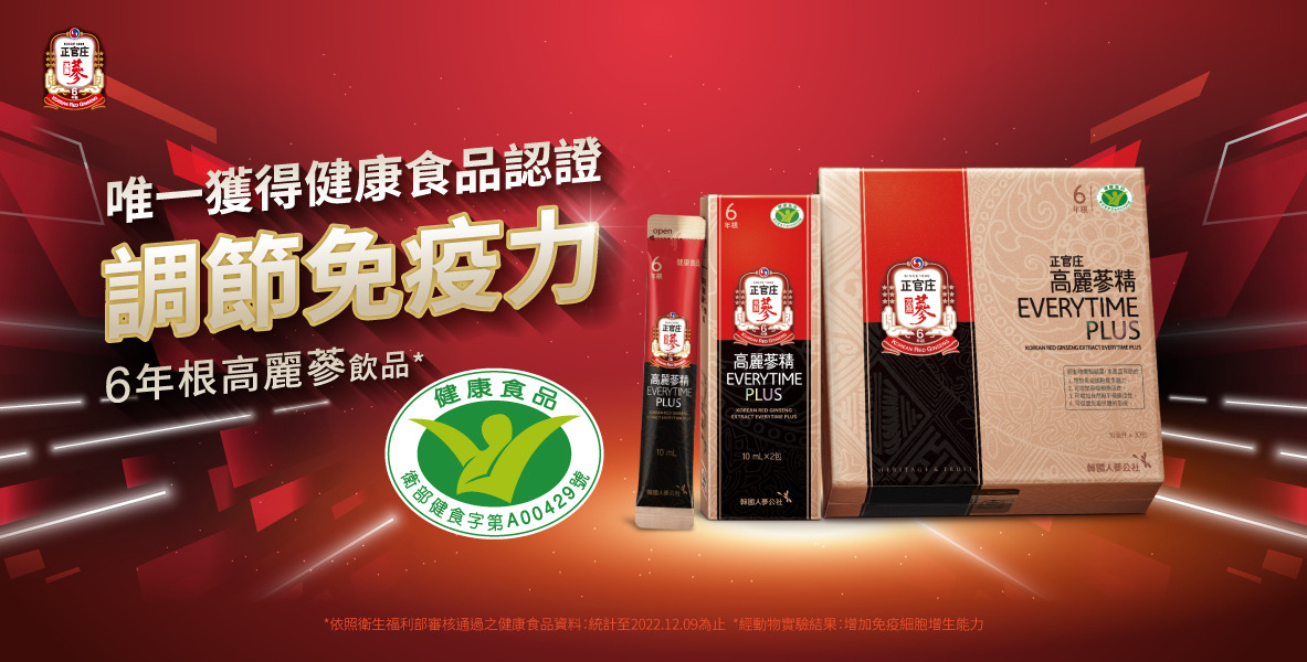 全球第一人蔘品牌正官庄,傳承超過200年的高麗蔘製造工藝,含極品6年根高麗蔘精華,明星品「高麗蔘精 EVERYTIME PLUS」、國寶級保養聖品的「蔘雞精」、「燉雞精」、以及超暢銷的美妍聖品「高麗蔘石榴燕窩胜肽飲」、「高麗蔘野櫻莓飲」。