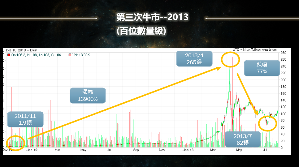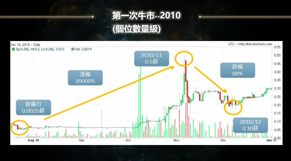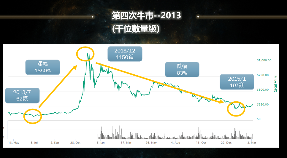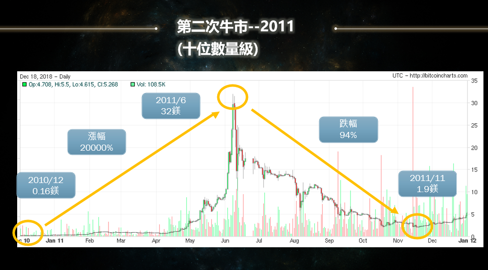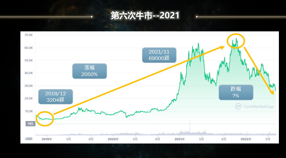 當然從感性上來講很多面向可以說,但論信仰這一點在幣圈我更看重的是理性的思維以及數學模型的推演,理性思維與數學模型就現在來看,幣價30000-10000美金都是非常好可以布局的時機,所以最近跟幣圈前輩較少見面,我猜他們開始動作了(笑);下圖也分享前幾次牛熊漲跌幅給大家參考思考,我一直相信的原因並不完全是"比特幣",我也相信人性貪婪恐懼是永恆不變的七宗罪之一。
