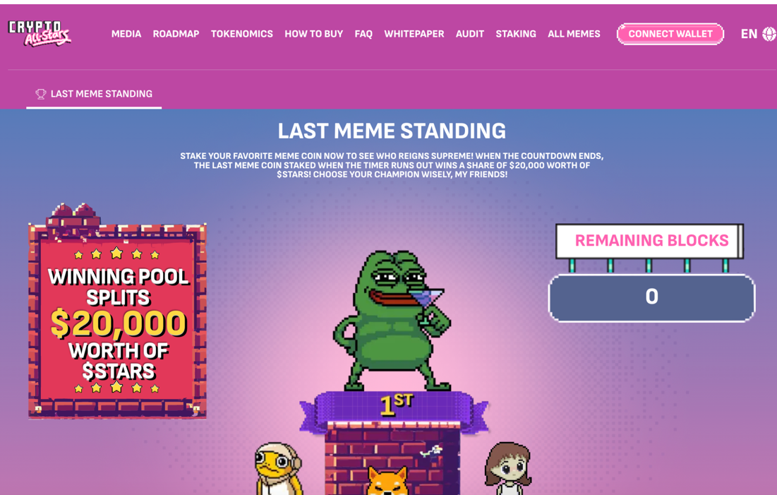 本周早些時候,項目舉辦了 $20,000 最後迷因幣生存者競賽。社區成員受邀質押他們符合資格的迷因幣。