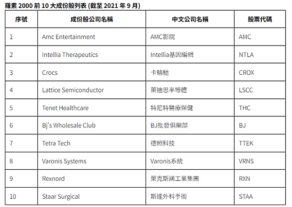 其中羅素2000指數(Russell 2000 Index)是羅素指數(Russell Indexes)系列的一種,主要以美國市場為基準,成分股都是美國公司,