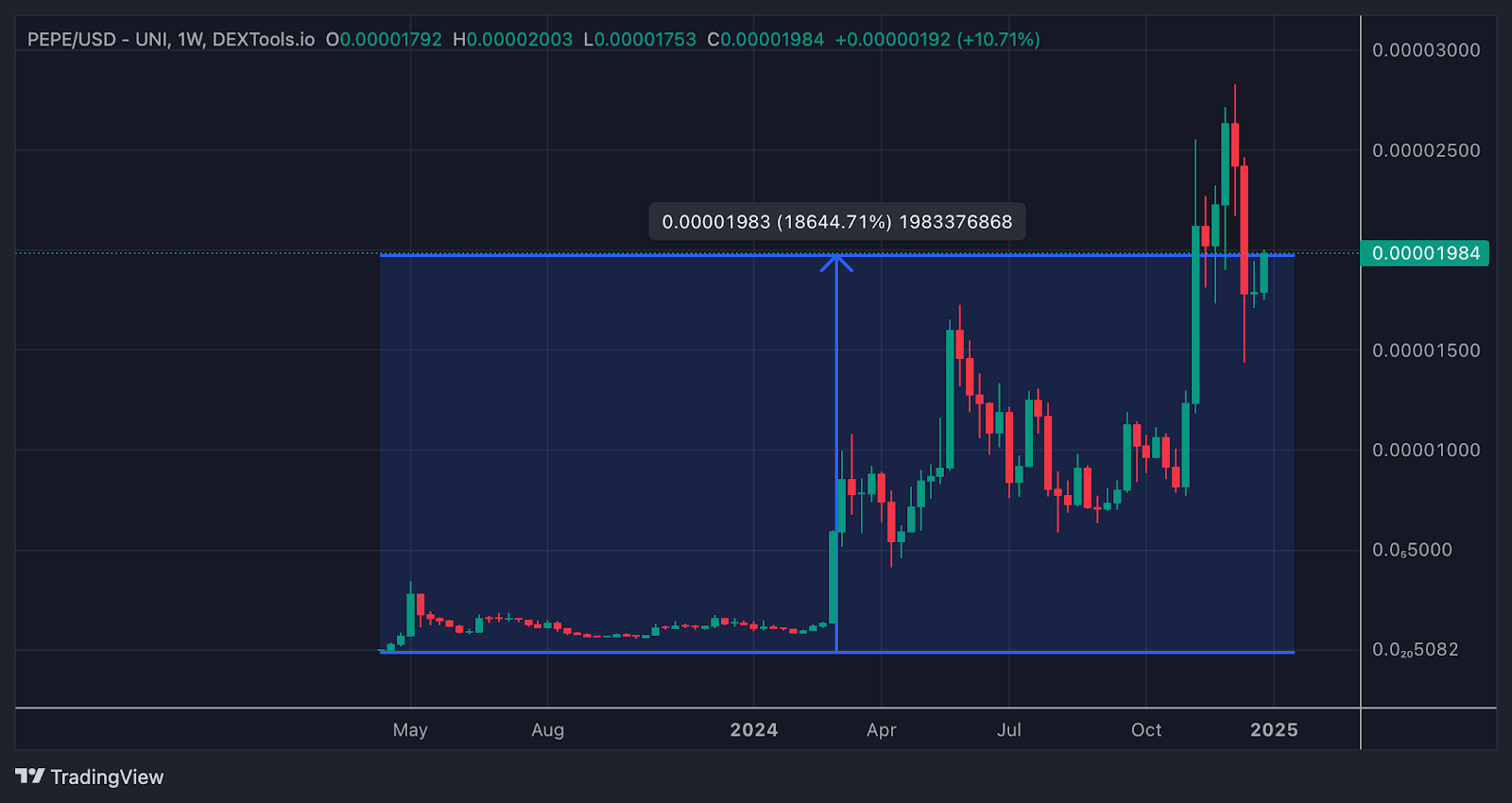儘管許多老牌迷因幣經歷了回調,但伊隆馬斯克仍然專注於所有與Pepe相關的事物,以及他對D.O.G.E的推動,青蛙迷因幣領域的勢頭並未減弱。