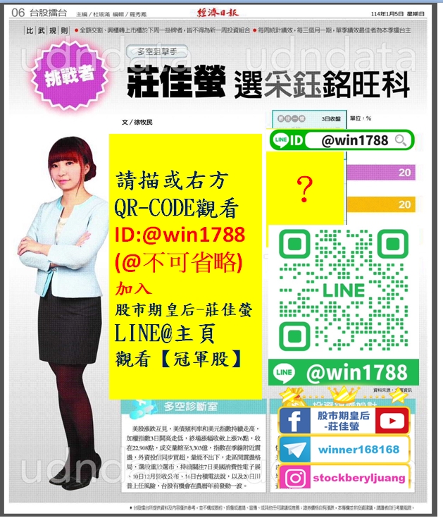 美股漲跌互見,美債殖利率和美元指數持續走高,加權指數3日開高走低,終場漲幅收斂上漲76點,收在22,908點,成交量縮至3,303億,指數在季線附近震盪,外資投信同步買超,量能不出下,走區間震盪格局,選股重於選市,持續關注7日美國消費性電子展、10日12月營收公布、16日台積電法說,以及20日川普上任風險,台股有機會在農曆年前發動一波。