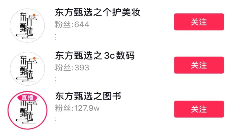 “東方甄選“註冊了多個垂類矩陣賬號,目前粉絲量不多