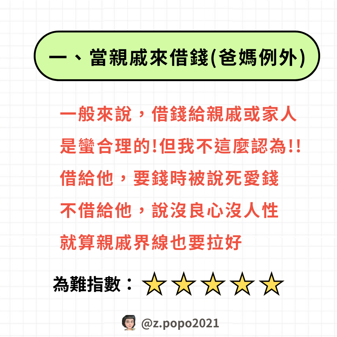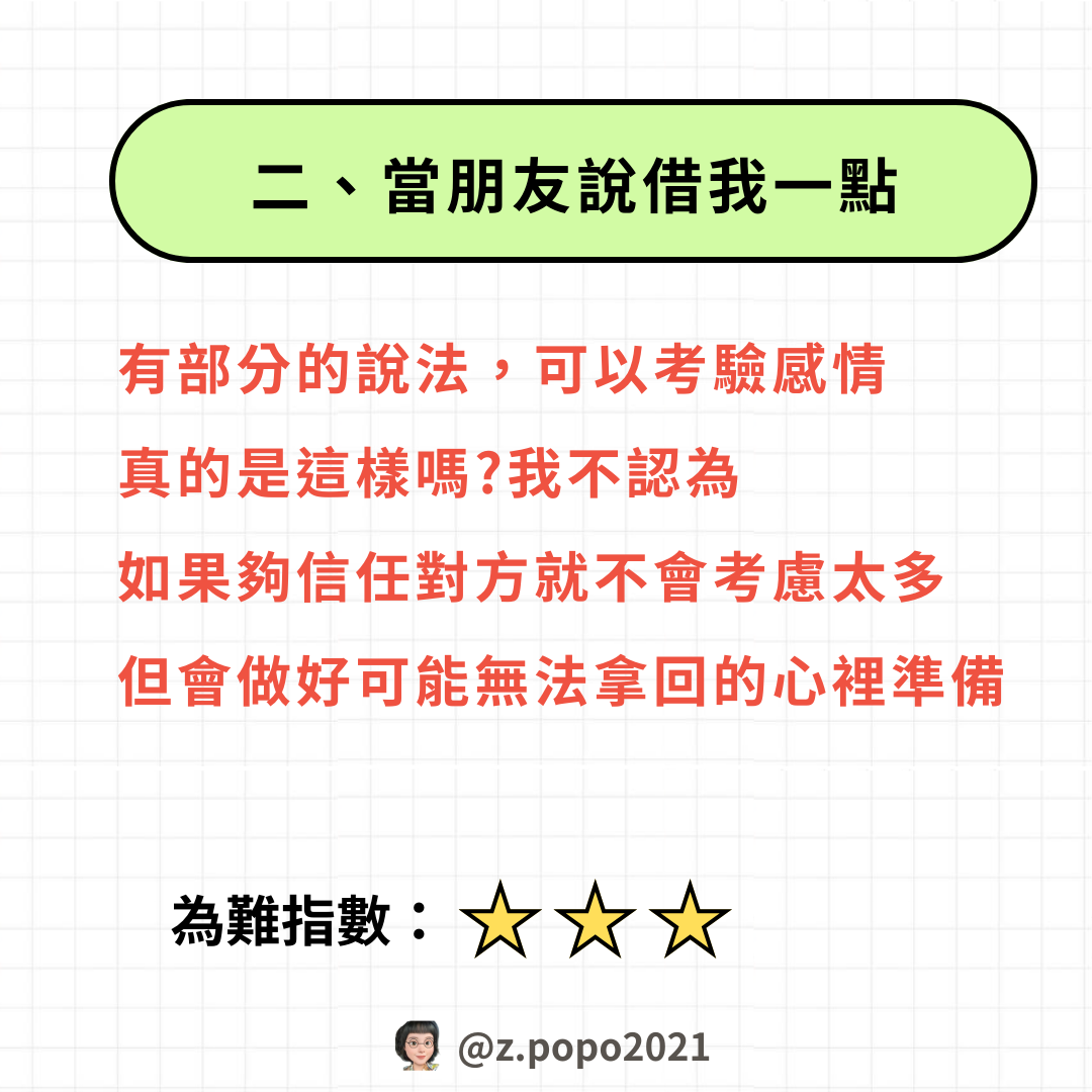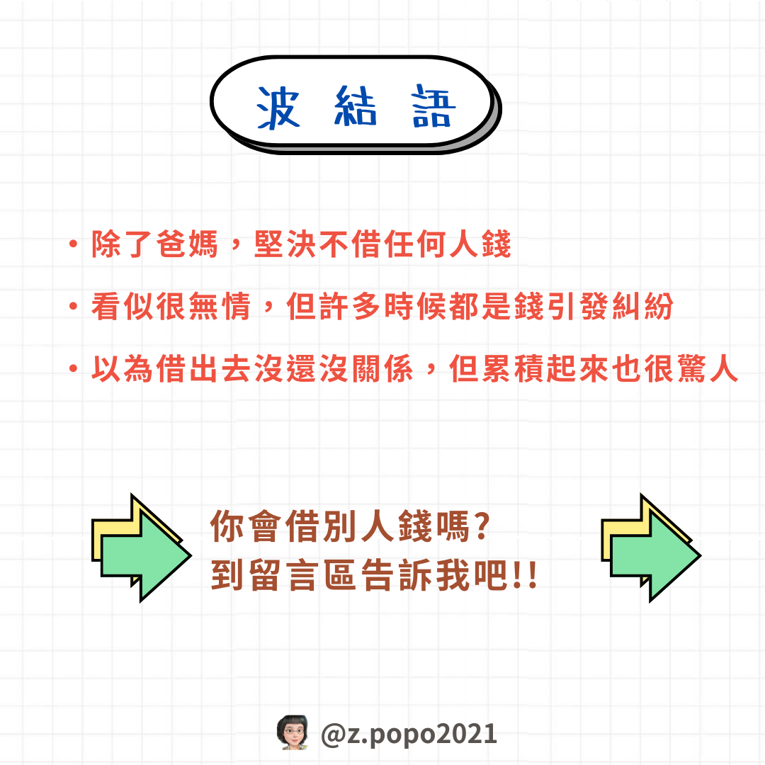 自此之後就堅決不借錢出去,但可以給予資源上的幫助,也曾經聽過因為不借錢而情緒勒索對方🤪