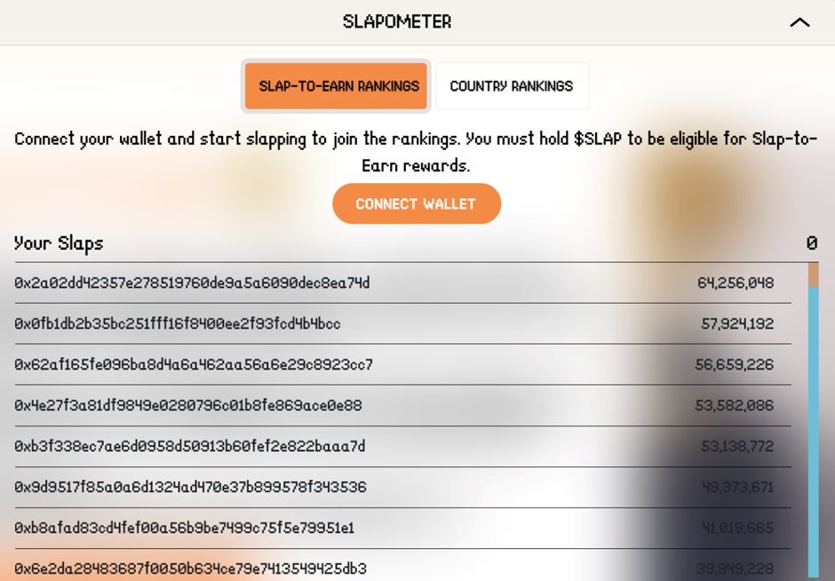 只有連接錢包並參與拍打的代幣持有者才能有資格參與即將到來的Slapdrop,因此現在加入是明智之選,不僅能享受第一季空投獎勵,還有即將到來的第二季(日期待定)以及資本增值的雙重收益。