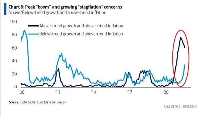 美國銀行基金經理調查顯示,市場對於滯脹的擔憂正日益加劇。