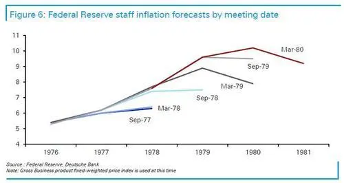 德意志銀行指出,從70年代來看,最重要的教訓是,即使通膨水準下降,更多"臨時"衝擊疊加可能使通膨保持在高位,並將導致預期失穩。