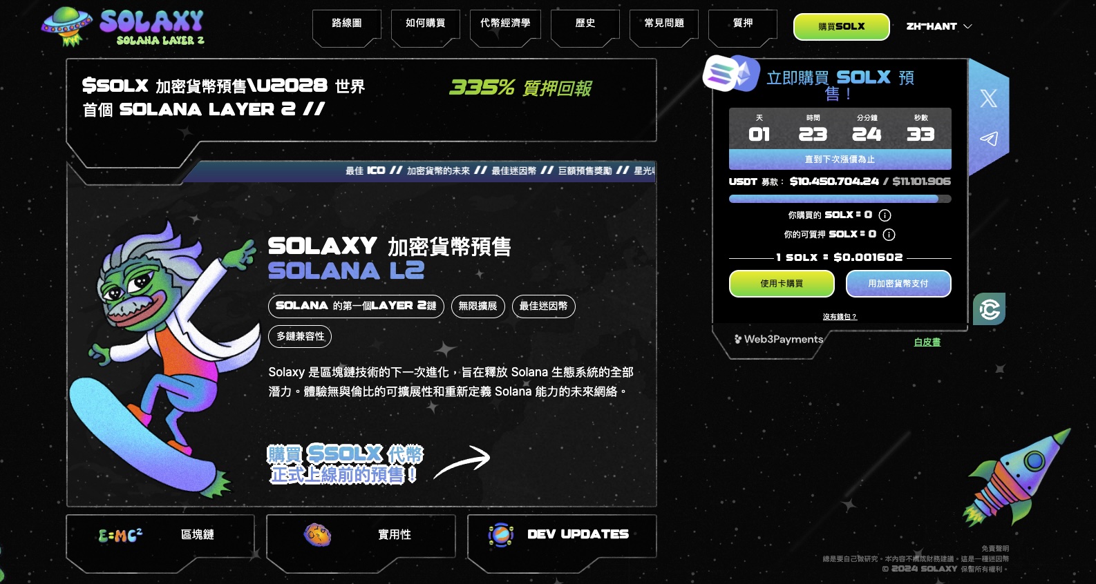 $SOLX仍在預售階段,在預售結束後再上市DEX及CEX,建議投資者可進入官方網站、X及Telegram瞭解預售最新資訊。